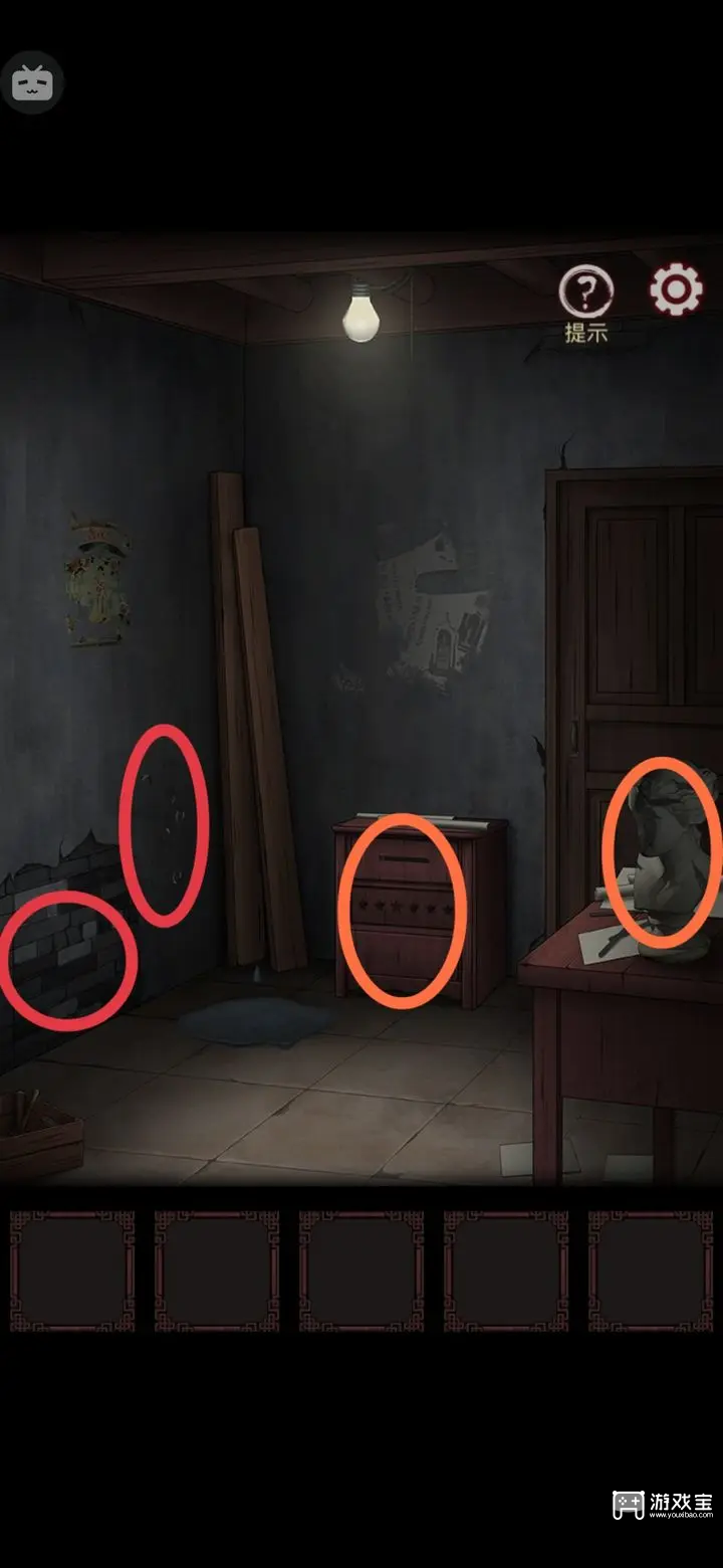 在香烛店门口,用挖耳勺撬开电瓶车后箱,获得泡椒鸡爪、绝味鸭脖和一半电话号码。结合理发店招牌线索,调整香烛店保险箱(顺时针180和90,逆时针90和180),获取游戏币和电话卡。游戏币用于玩打地鼠小游戏赢得皮球,交给祠堂石狮子后,用紫光灯照射眼睛获得新线索,调整红箱子得到502胶水和收音机天线。